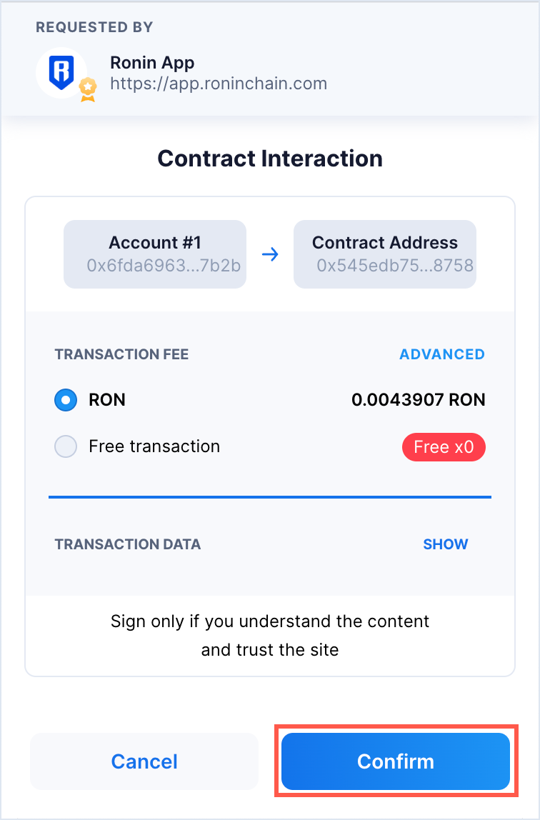 After the transaction is confirmed, you successfully restaked your RON rewards.